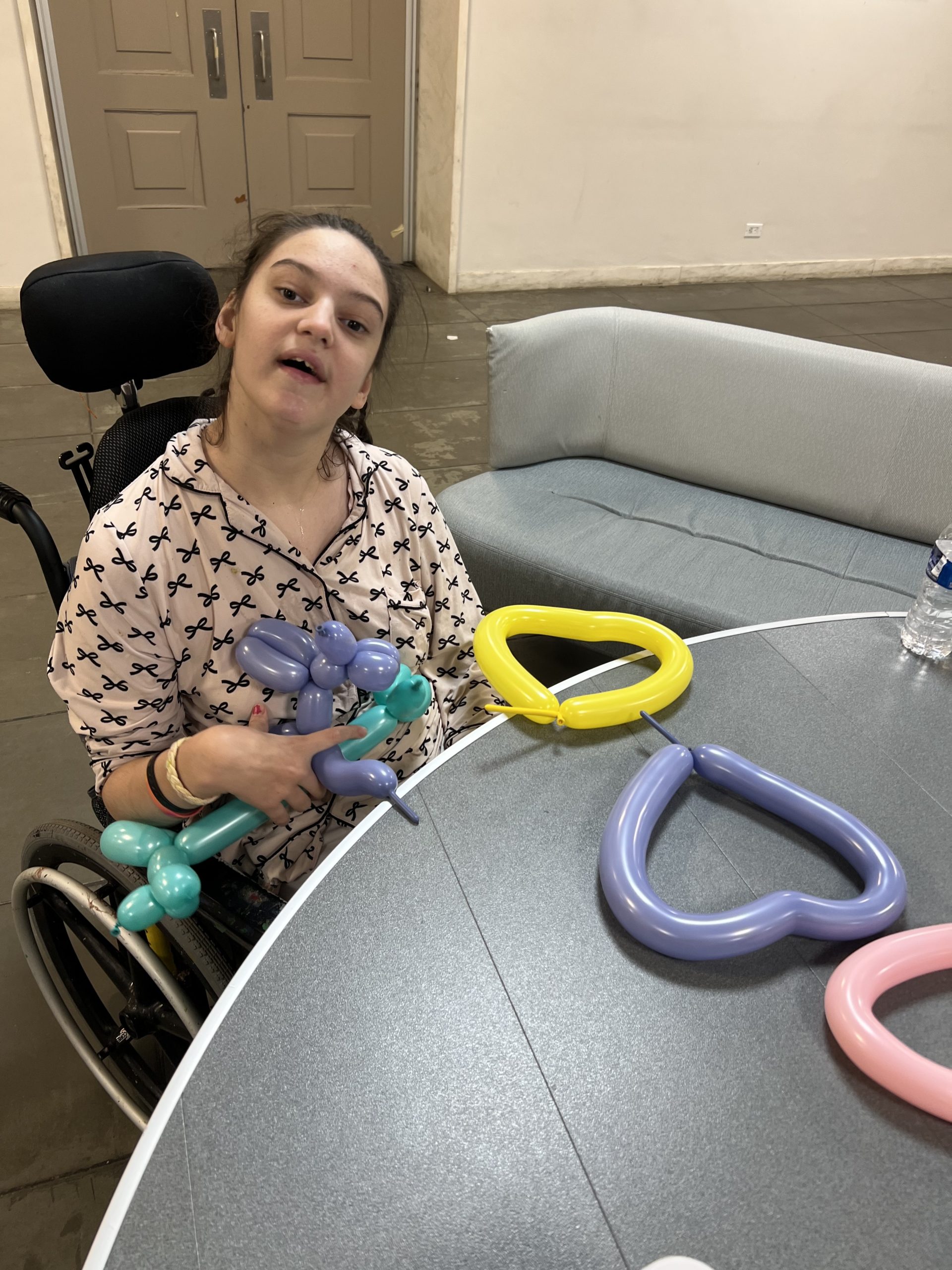 The workshop was also particularly inclusive for students with limited mobility and those who experience challenges with fine motor skills. Balloon twisting can be adapted easily, allowing students to participate using larger movements, partial assistance, or collaborative approaches. For some students, holding or stabilizing a balloon while another person twisted it offered a meaningful way to engage without physical strain. For others, practicing simple grips and twists supported the development of hand strength and coordination in a low-pressure environment. Occupational therapy research highlights that playful, functional activities can help build fine motor skills while maintaining motivation and enjoyment, making balloon twisting a practical and effective choice.